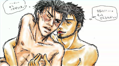 『誕生日祝いイラスト』 by.胡瓜&倫明 様 誕生日祝い!ということで、 うりたんとママンが絵チャで描いてくれました!! オヤジーズですっv しかも、絡み〜!!! 何でも私にくださるのはエロ絵でなければいけないと… (誰が言ったんだ、そんなこと/笑) オヤジスキーな私に素敵なプレゼントです。 へへへ〜vvv